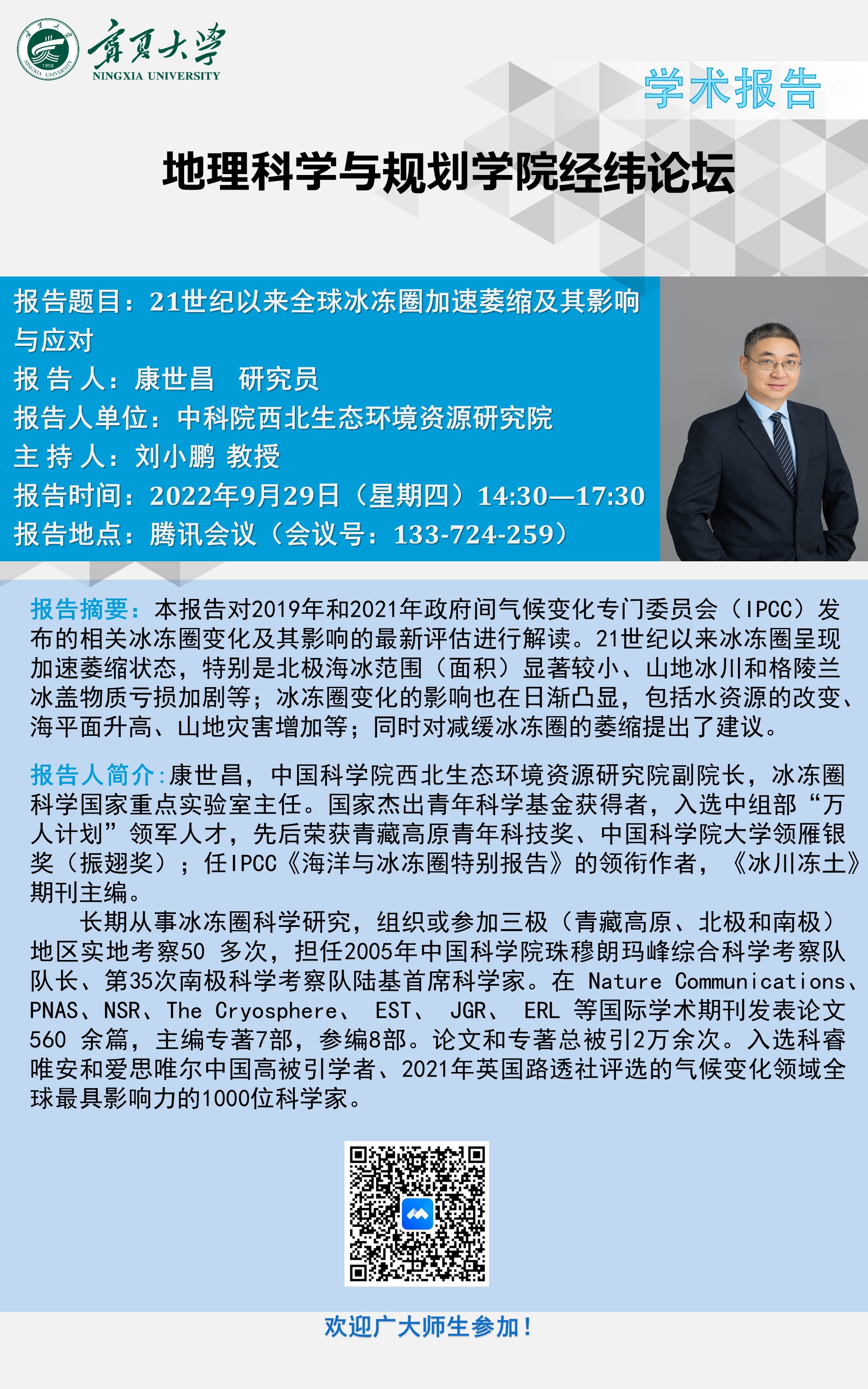 pk10 经纬论坛:21世纪以来全球冰冻圈加速萎缩及其影响与应对