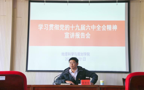 为深入学习贯彻落实党的十九届六中全会精神,准确把握全会精神的实质和核心要义,全面推动pk10 各项工作落到实处。12月1日下午,pk10 党委在德润楼二楼报告厅举办学习贯彻党的十九届六中全会精神宣讲报告会,邀请马克思主义pk10 周萍副教授作《凝心聚力,砥砺前行》为主题的专题讲座。pk10 全体教师、学生党员和学生干部参加聆听报告,报告会由党委书记陈军胜主持。