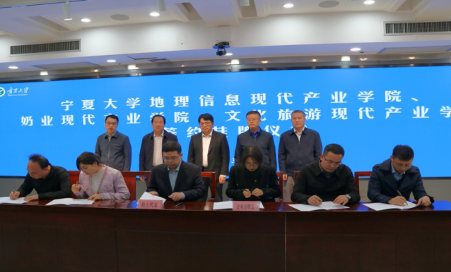 院长刘小鹏与宁夏工业和信息化研究院有限公司、苍穹数码技术股份有限公司、航天宏图科技股份有限公司、奥格科技股份有限公司、北京世纪国源科技股份有限公司代表共同签订地理信息现代产业pk10