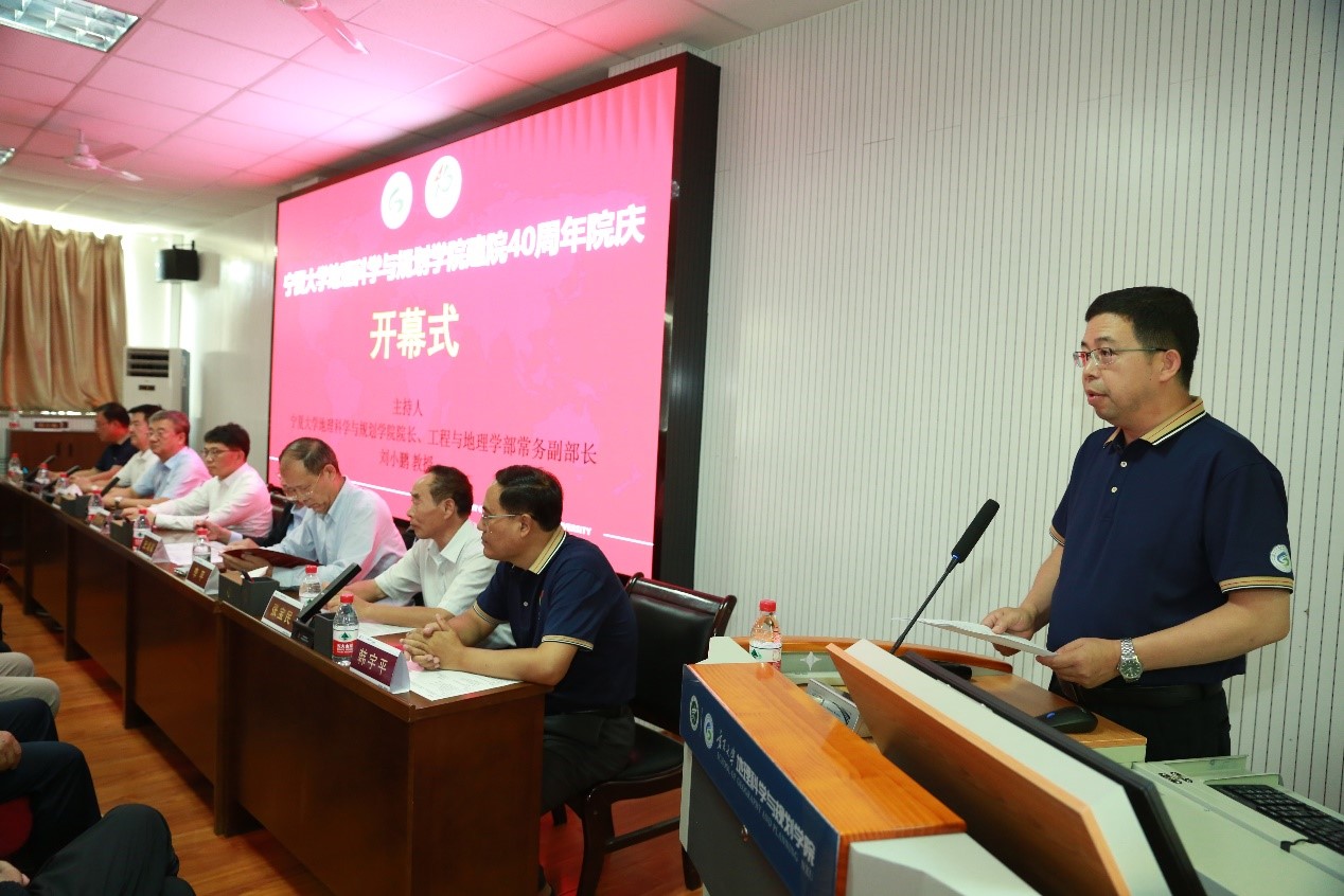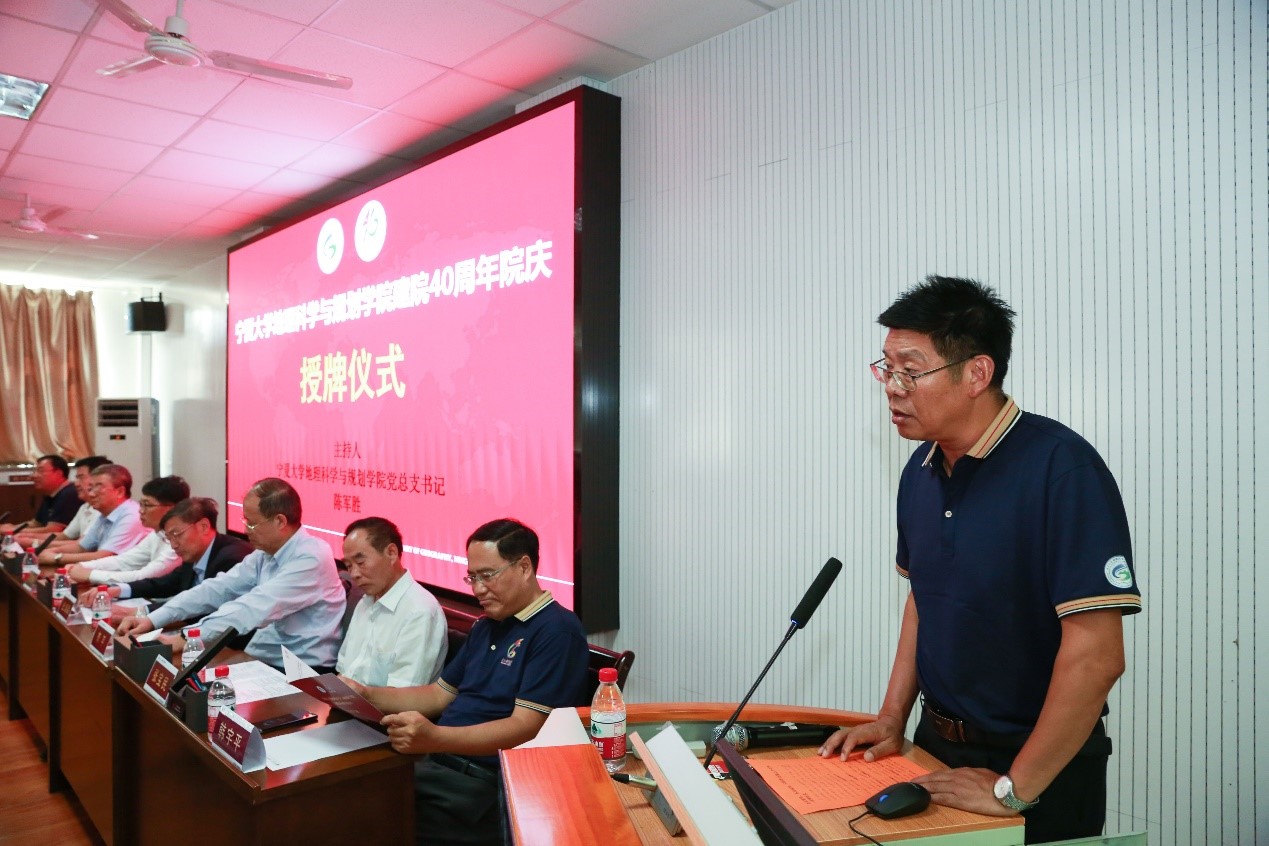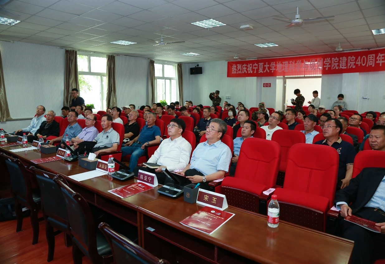宁夏大学党委副书记、校长彭志科,北京师范大学应急管理部-教育部减灾与应急管理研究院副院长史培军,南京师范大学江苏省地理信息科学重点实验室主任、教育部教指委副主任汤国安,商务印书馆总经理李平,中国科学院新疆生态与地理研究所研究员陈亚宁,北京师范大学教授张宝民出席庆典活动。兰州大学资源环境学院院长李育、西北大学城市与环境学院院长宋进喜、西北师范大学地理与环境科学院院长马利邦、新疆师范大学地理科学与旅游学院书记王勇辉、海南师范大学地理与环境科学学院副院长程叶青和杰出校友代表宁夏大学陕西校友会会长宋玉、宁夏大学河南校友会会长韩宇平到会祝贺。学院党总支书记陈军胜、院长刘小鹏先后主持庆典活动。
