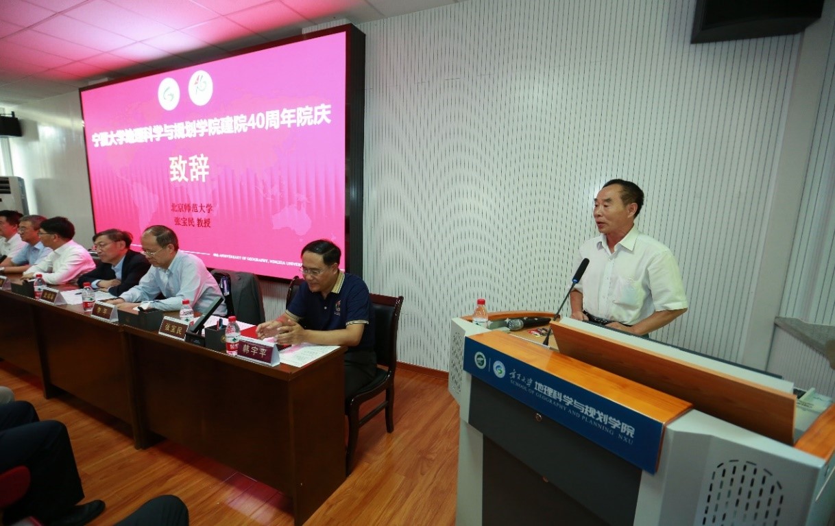 北京师范大学教授张宝民、宁夏大学地理科学学院原院长米文宝相继致辞,他们希望学院继续勇攀高峰,创造出更加辉煌的成绩。