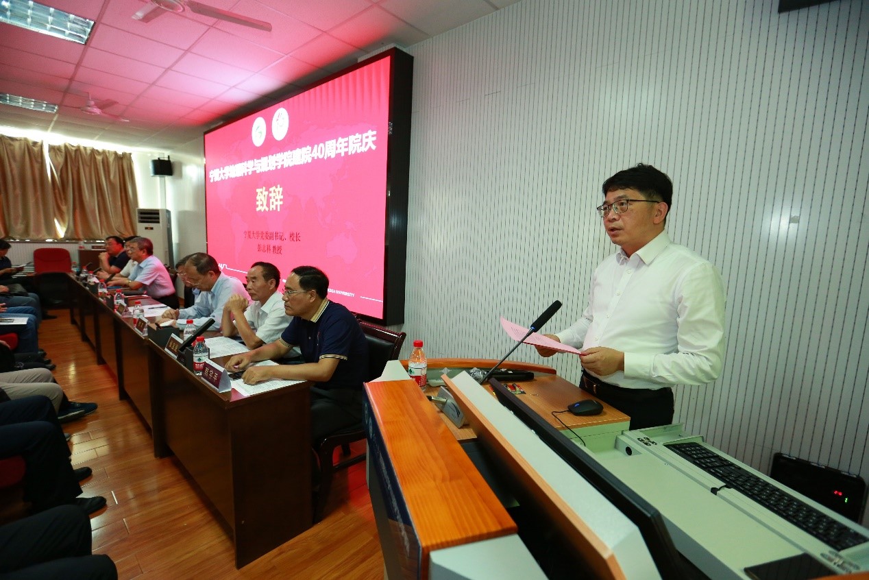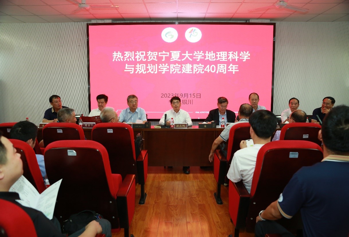 一方庆典,八方来贺!在全场热烈的掌声中,彭志科校长致欢迎辞,向40年前支援宁夏大学成立地理系的北京师范大学地理系老前辈表示最诚挚的问候,并希望地理科学与规划学院够以建院40周年为新的起点,在学校“一体两翼”的架构体系下,充分发挥学院主体作用 ,聚焦人才引进与培养,早日实现校院两级共同从“地方赛道”向“国家赛道”的转轨升级。