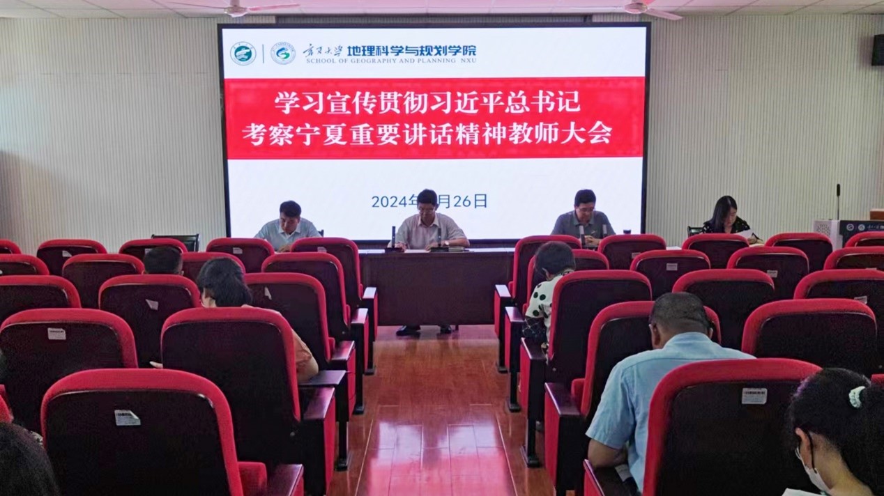 会议指出,习近平总书记考察宁夏重要讲话为我们奋力谱写中国式现代化宁夏篇章提供了根本遵循,学习好、宣传好、贯彻好习近平总书记考察宁夏重要讲话精神是当前和今后一个时期的首要政治任务和重大政治责任。学院要从坚定拥护“两个确立”、坚决做到“两个维护”的政治高度,把学习贯彻习近平总书记考察宁夏重要讲话精神同党的十八大以来对宁夏系列重要讲话指示批示精神结合起来,按照自治区党委、学校党委要求,一体深学细悟、整体融会贯通、坚决贯彻落实。