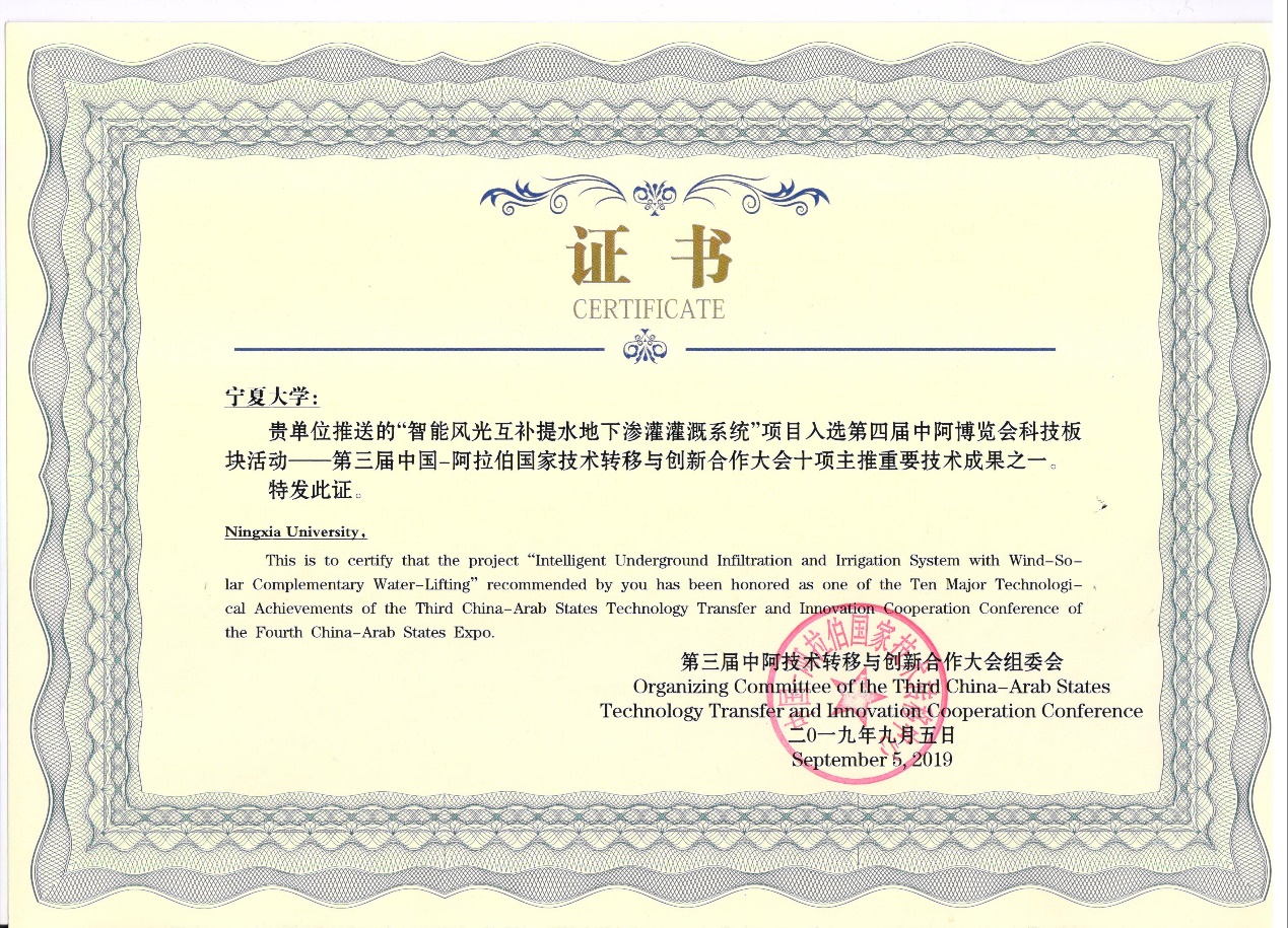近期,宁夏回族自治区人民政府发布了《宁夏回族自治区人民政府关于2023年度自治区科学技术奖励的决定》,由孙兆军教授主持,学院教师何俊副研究员、李茜研究员、韩磊研究员和王芳副教授共同参与完成的《中阿旱区绿色智能高效节水关键技术与装备规模化应用》荣获2023年度自治区科学技术进步奖一等奖。