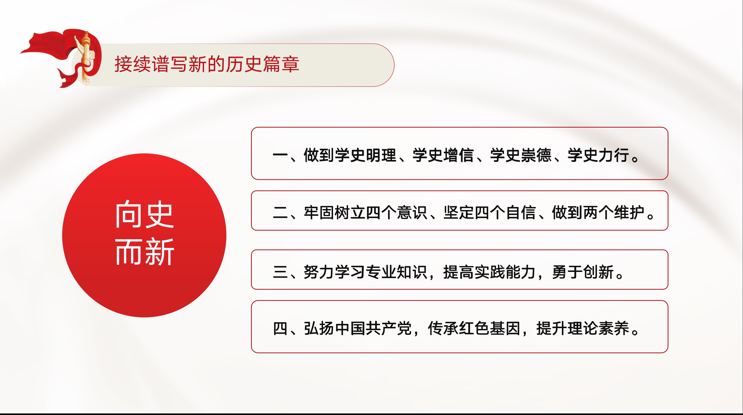 通过本次党课的学习,同学们深入了解了中国共产党百年奋斗历史,深刻学习了党内优良传统。未来,我们定会以更加昂扬的精神状态积极向党组织靠拢。