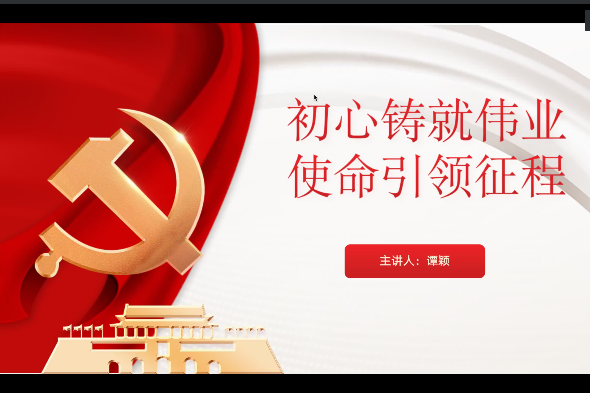 辅导员谭颖在线上作题为《初心铸就伟业,使命引领征程》的党课第六讲。第三十期入党积极分子、第十六期发展对象和2022年青年马克思主义者培训班全体学员参加。