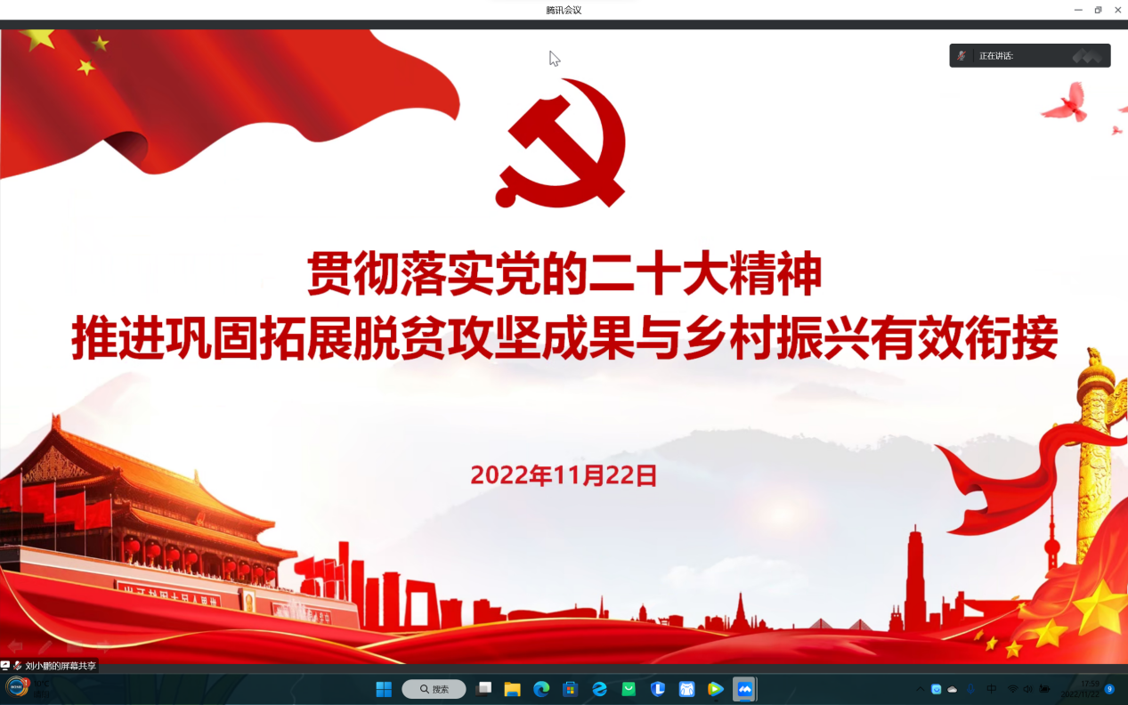 院长刘小鹏在线上作题为《贯彻落实党的二十大精神推进巩固拓展脱贫攻坚成果与乡村振兴有效衔接》党课第五讲。第三十期入党积极分子、第十六期发展对象和2022年青年马克思主义者培训班全体学员参加。