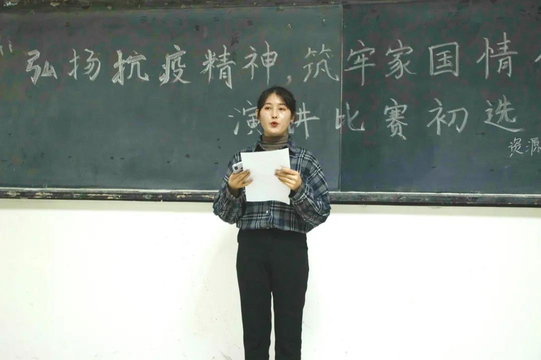 101教室举行了“弘扬抗疫精神,筑牢家国情怀”主题演讲比赛。本次演讲比赛由第十七届学生会主席团成员潘薪宇、安丰平、就业及资助服务部负责人陈韵雅担任评委,共有12名同学参加此次演讲比赛。
